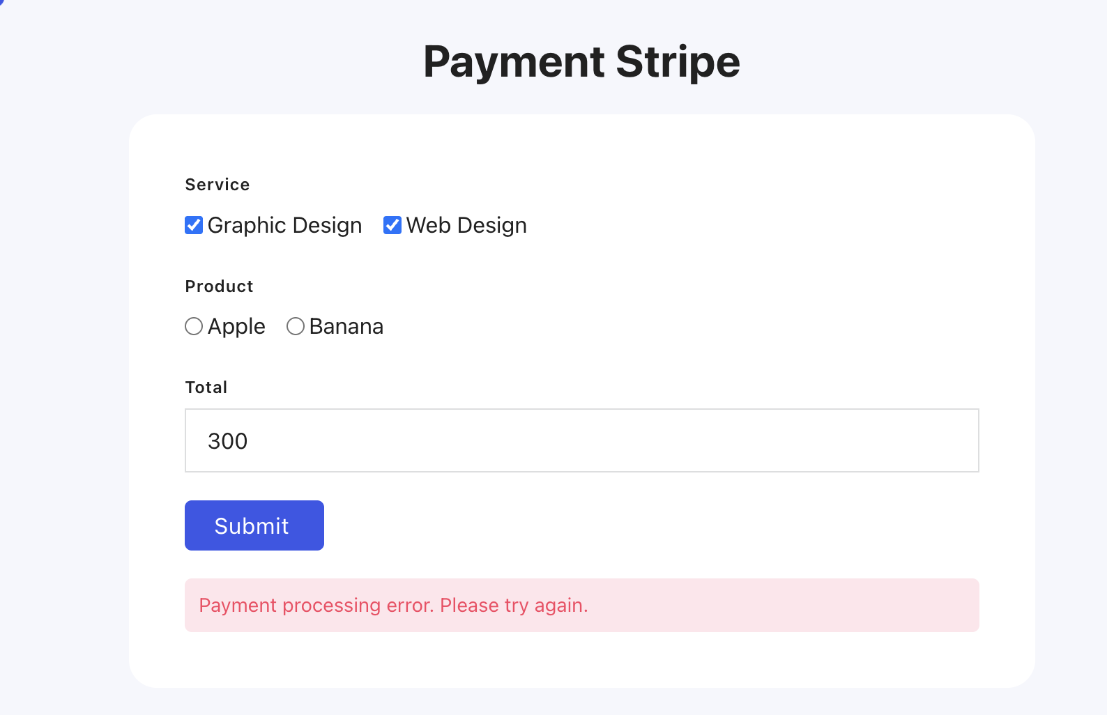 I tried to use Checkbox Wrapper in Payment (Stripe) to allow users to select multiple services, but it showed an Error.