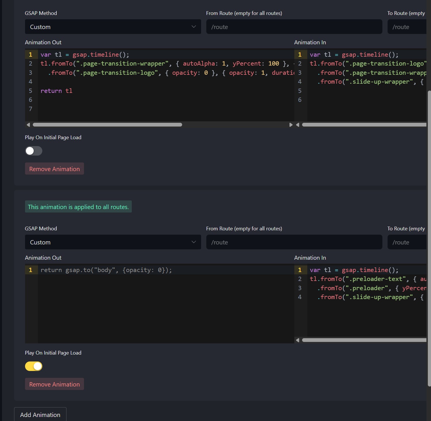 While it seems working for regular timelines it doesn’t work for ones used for in/out page transition. Element style is applied but not executed frontend. Is that expected?