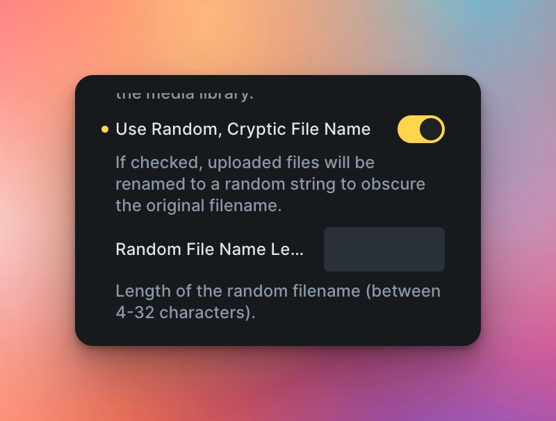 I would like to set a custom name for a file being uploaded though upload field. So whatever filename user uploads, the can be always random, it get’s uploaded with a set name specified in settings. Any way to make it work?