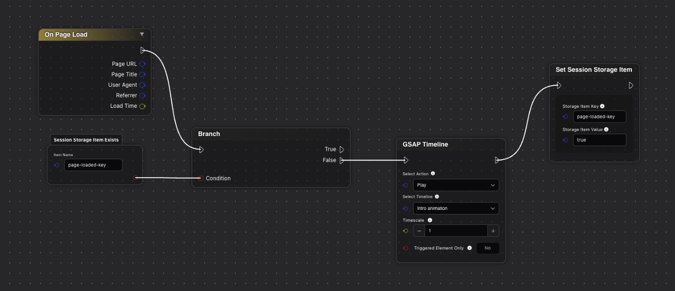 - Does the Node Editor have session storage nodes or “play once” triggers?
