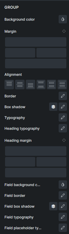 After using the Pro Form on several sites, I never get the Group section work inside the Global Field Styles tab. I’ve attached a screenshot.