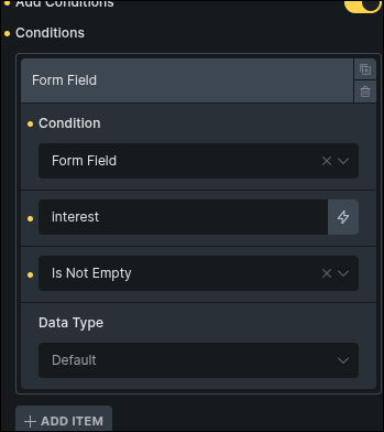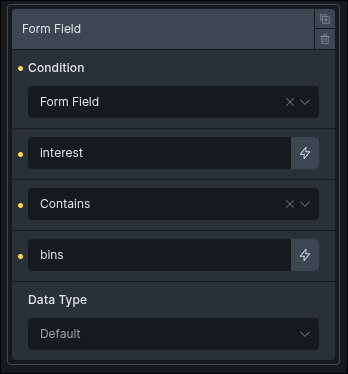 While I’m here, and since this is not in the documentation or stated completely clearly in any forum posts either, here is how to make a checkbox conditionally display other form fields: