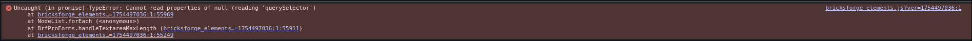As far as I can tell now this was caused by a gravityforms form being on the same page - the two conflict with one another. I was simply using it as a reference to build the same form in bricksforge. Once I removed the gravityform the console error went away and my conditionals started working.