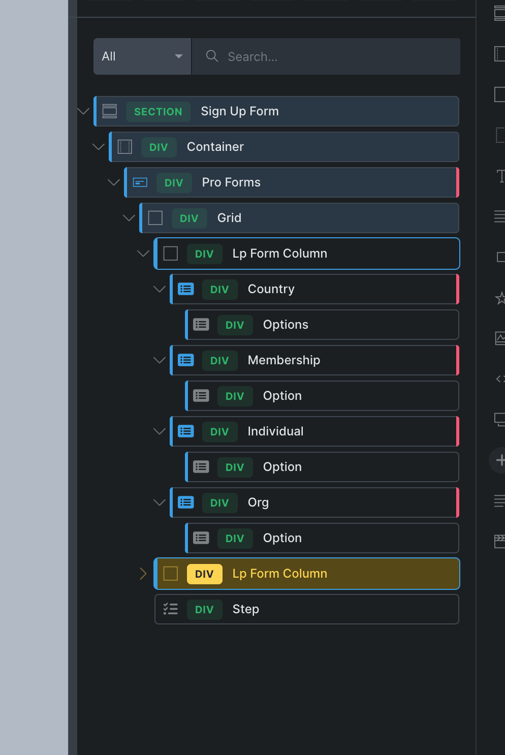 I have a Pro Form with a few selects that pull in JSON data, and it includes conditional logic and HTML elements that display membership packages based on the selections.