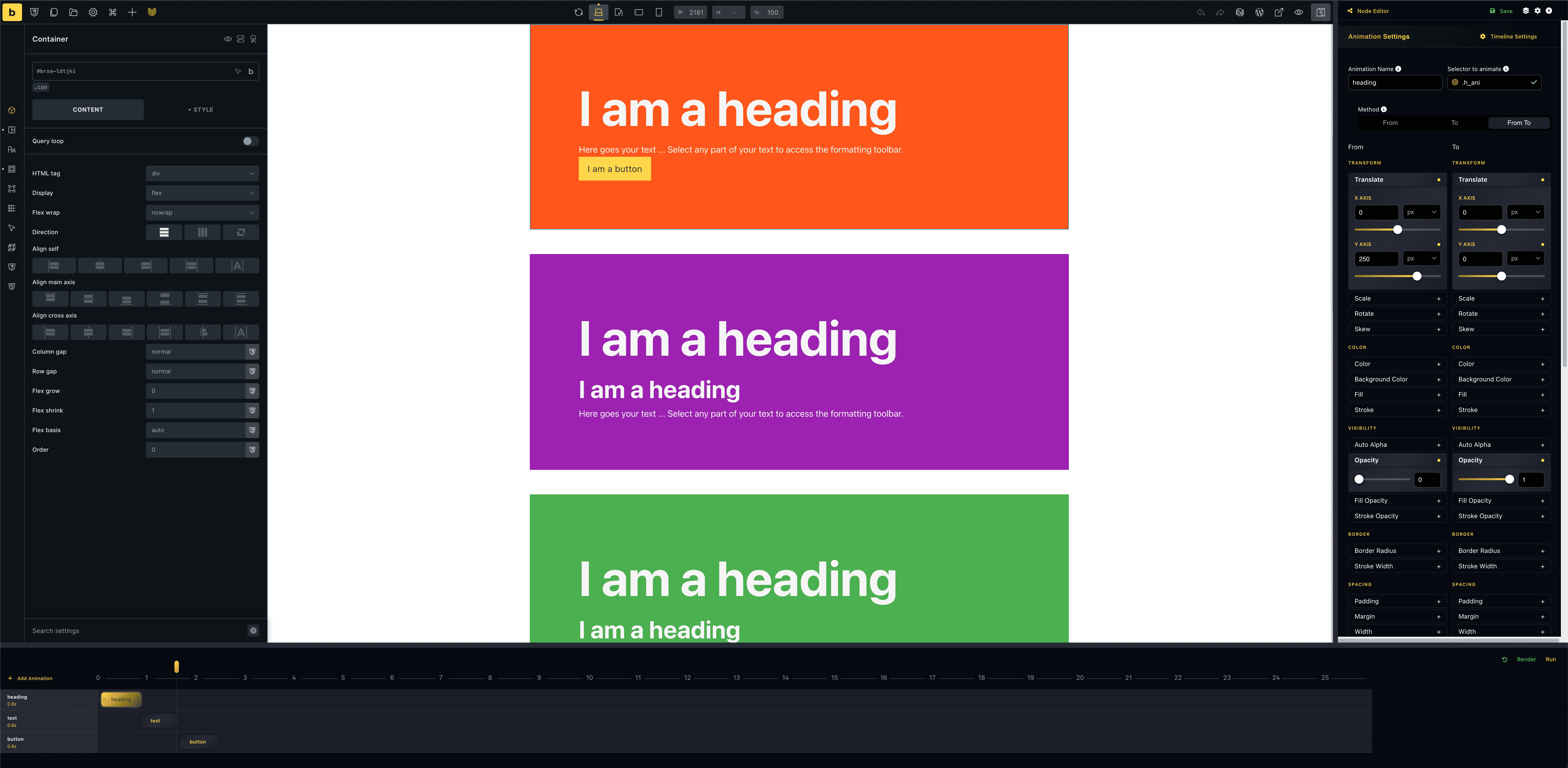 I created a timeline. And in it, I animated these three elements.