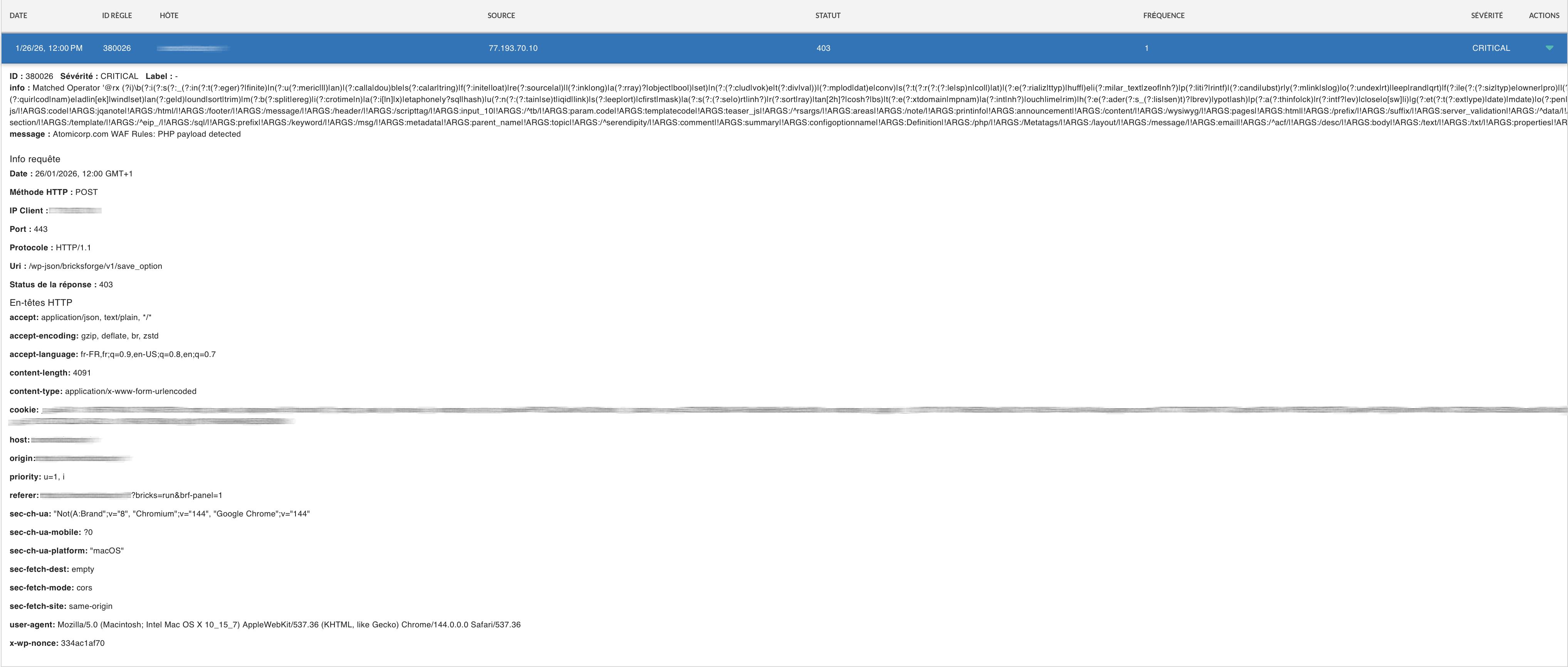 The “Atomicorp.com WAF Rules (380026) : PHP payload detected” is entirely responsable for this behavior and can cause a total mess between the “brf_panel” and “brf_panel_nodes” lines of the “wp_options” table and the UI for both Node Editor and Animations Timeline. There was some orphans items present in the DB but invisible in the UI.